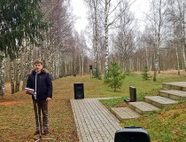 Глава Краснинского муниципального округа Максим Владимирович Мищенко и командир поискового отряда "Русич" Светлана Александровна Колабская выступили перед собравшимися, напомнив о трагических событиях, связанных с этой датой, о том, как важно бережно хранить и передавать память о героях от поколения к поколению, чтобы потомки героев знали о жертвах, принесённых ради мирной жизни на земле.