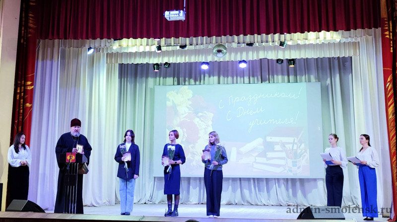 Со словами поздравлений с наступающим Днем учителя к присутствующим обратились Глава муниципального образования «Краснинский муниципальный округ» Смоленской области Максим Владимирович Мищенко, начальник отдела образования Юлия Сергеевна Круглей, настоятель Церкви Преображения Господня, протоиерей отец Сергий Мосейчук.