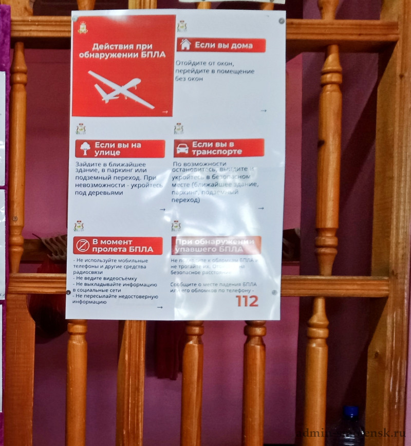 Посетителям рассказали о необходимости соблюдения правил поведения при обнаружении беспилотного летательного аппарата, о том, что в первую очередь нужно позвонить по единому номеру вызова экстренных служб 112 и сообщить оператору следующие сведения: время и место обнаружения, примерную высоту, скорость и направление полета, по возможности форму и окраску дрона.