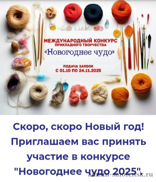 С 1 ОКТЯБРЯ ПО 24 НОЯБРЯ 2025 года проходит прием заявок на участие в международном онлайн-конкурсе декоративно-прикладного творчества «Новогоднее чудо 2025».
