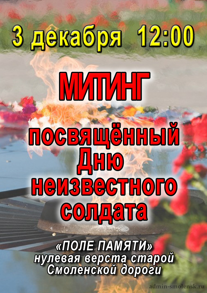 Приглашаем вас принять участие в митинге «Вечной памяти достойны», посвященном Дню Неизвестного солдата.